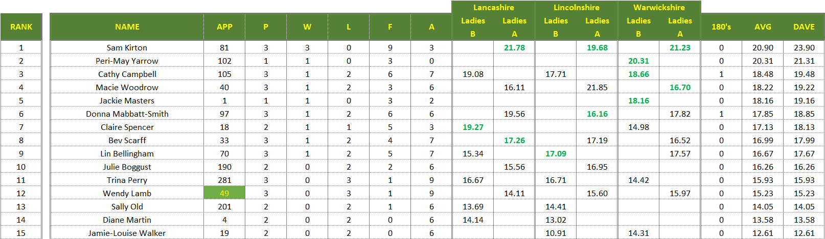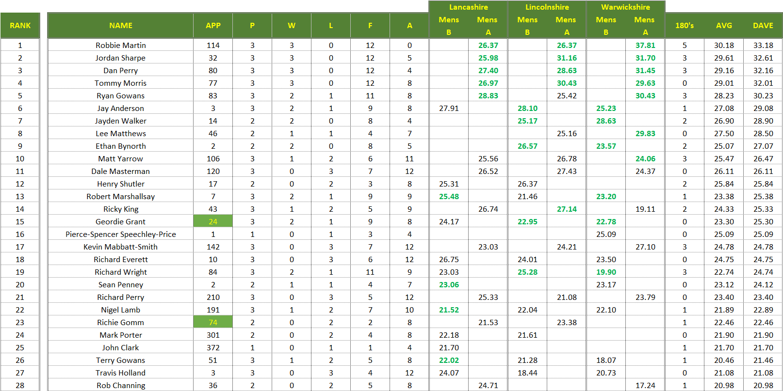 Players Merit Tables - 2025/2026 Season - Dorset County Darts