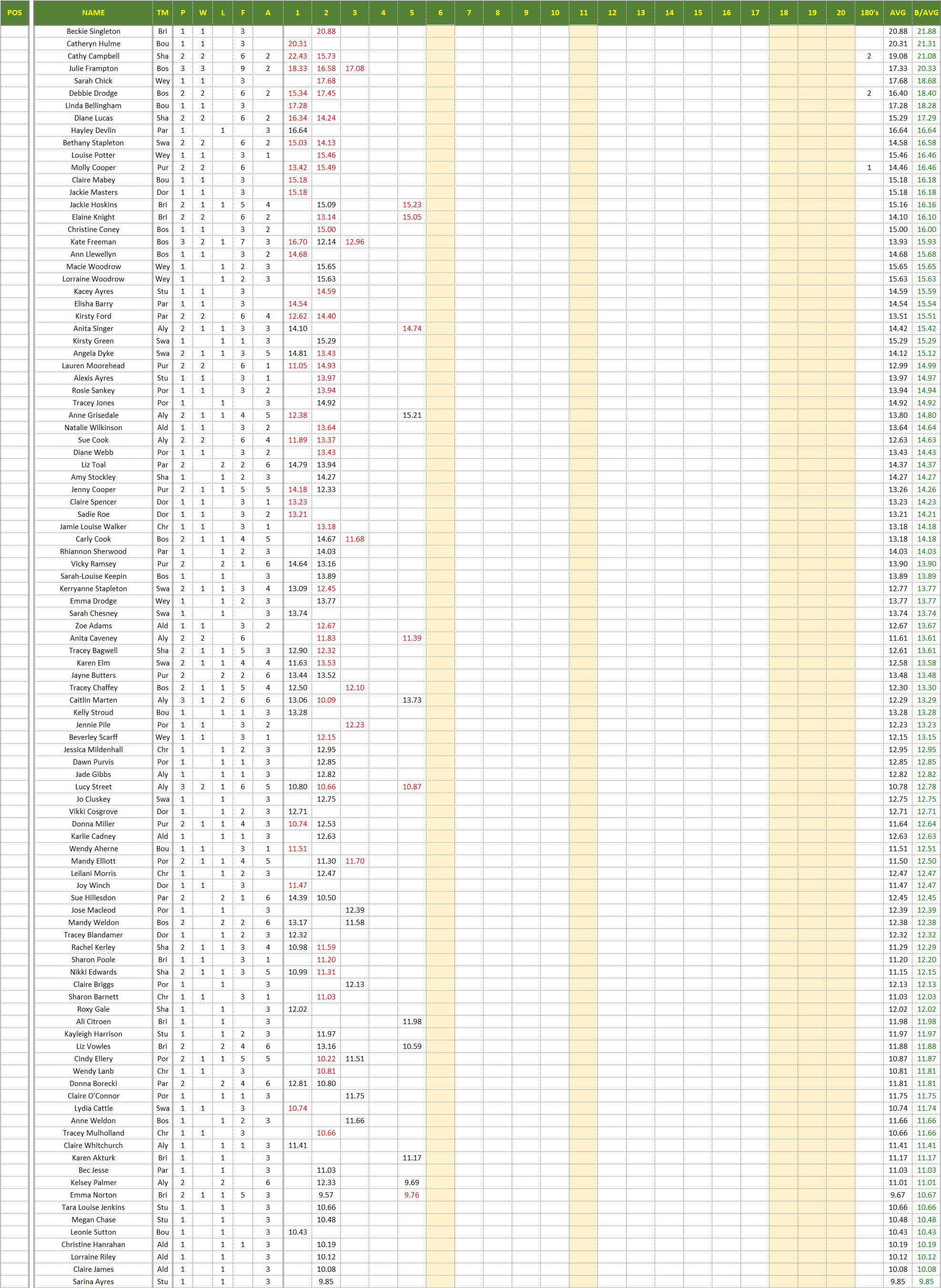 Ladies Averages Update - 27th September 2025 - All the averages are up to date according to results that have been sent and made available to the ladies superleague secretary. Future updates will come as soon as they are released by the ladies superleague secretary.