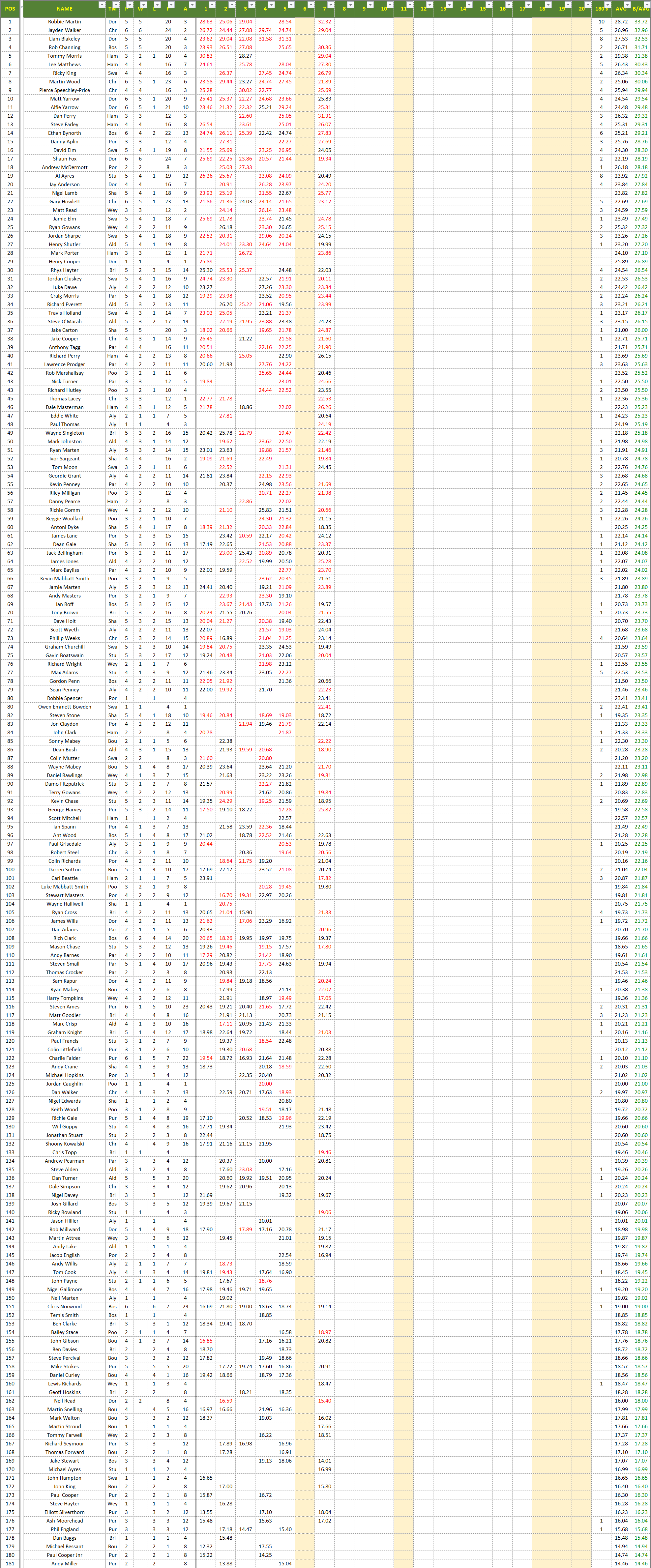 Men's Averages Update - 26th November 2025 - All the averages are up to date according to results that have been sent and made available to the mens superleague secretary. Future updates will come as soon as they are released by the mens superleague secretary.