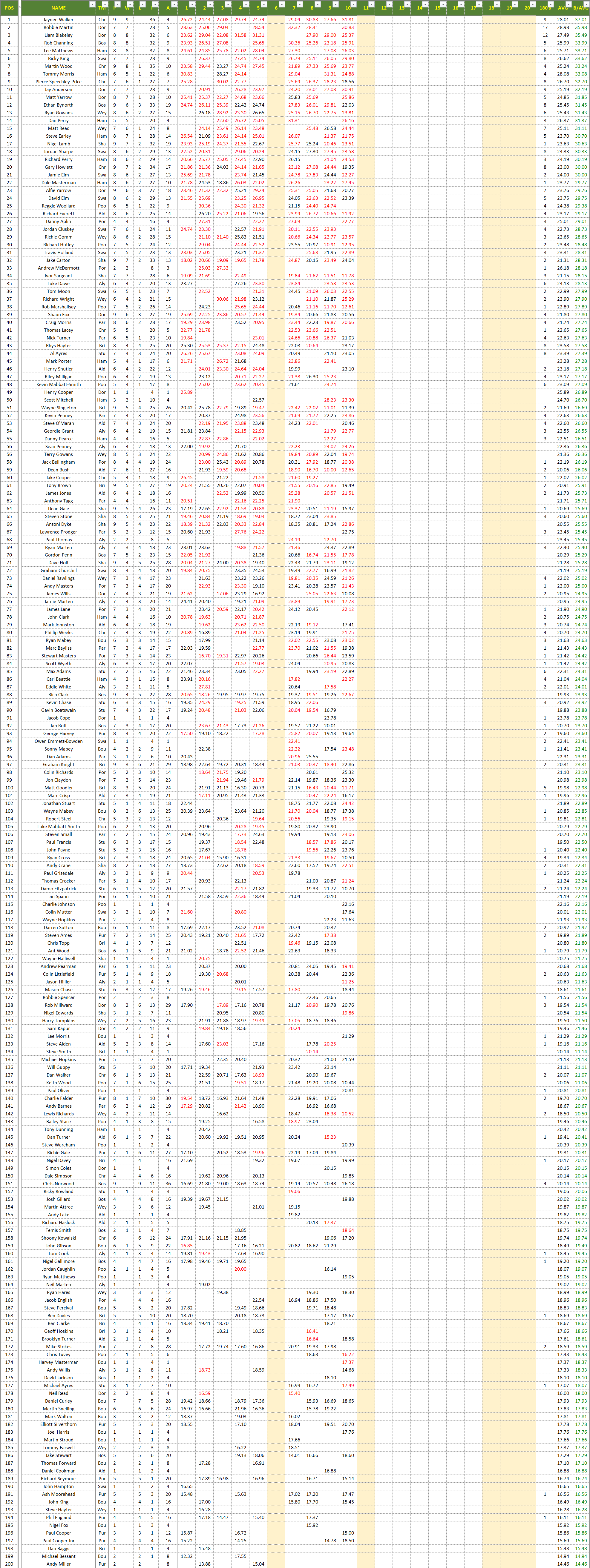 Men's Averages Update - 2nd February 2026 - All the averages are up to date according to results that have been sent and made available to the mens superleague secretary. Future updates will come as soon as they are released by the mens superleague secretary.